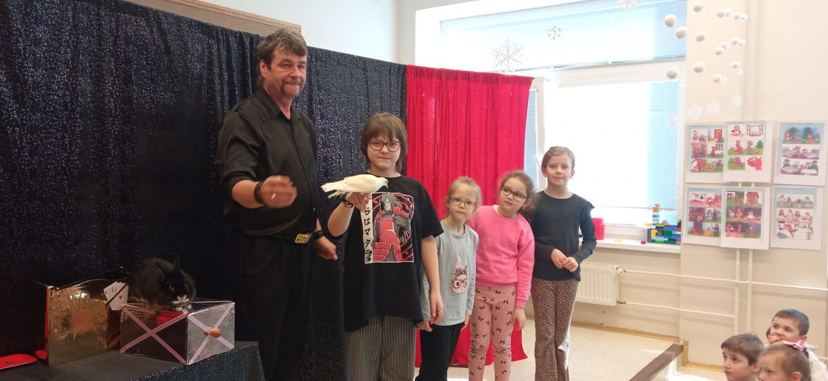 Školní družinu navštívil kouzelník a proměnil běžné odpoledne v kouzelný zážitek plný triků, čar a smíchu. Děti s nadšením sledovaly kouzla, při kterých mizely předměty, objevovaly se karty a nechyběla ani kouzelnická hůlka.