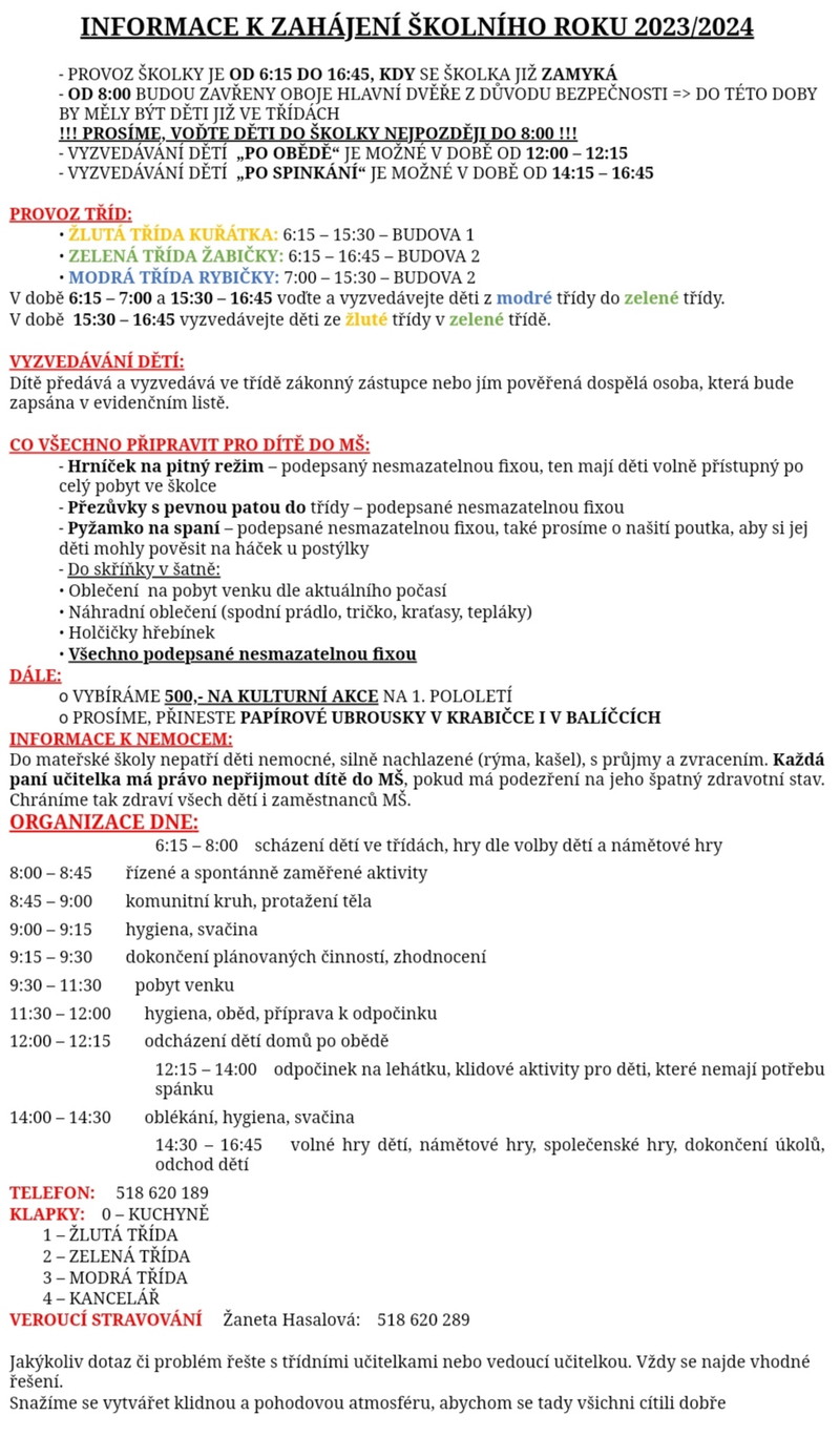 Informace k zahájení školního roku 2023/2024 (MŠ Svatobořice)
