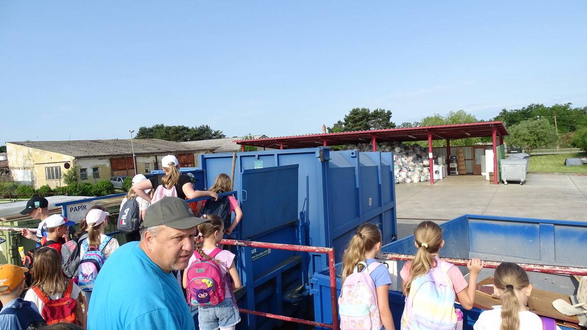 Dne 5.6. zavítali žáci 1.-5. ročníků + PT na exkurzi do sběrného dvora. Krom vozového parku, který má obec k dispozici k zajištění lepších služeb v obci, se žáci mohli též projít po samotném sběrném dvoře, kde se seznámilise samotným způsobem třídění odpadu a též významu, který třídění přináší. Děkujeme všem pracovníkům sběrného dvora, že nám věnovali svůj čas a vedení obce nejen za to, že nám byla prohlídka umožněna, ale i za drobné občerstvení pro děti.