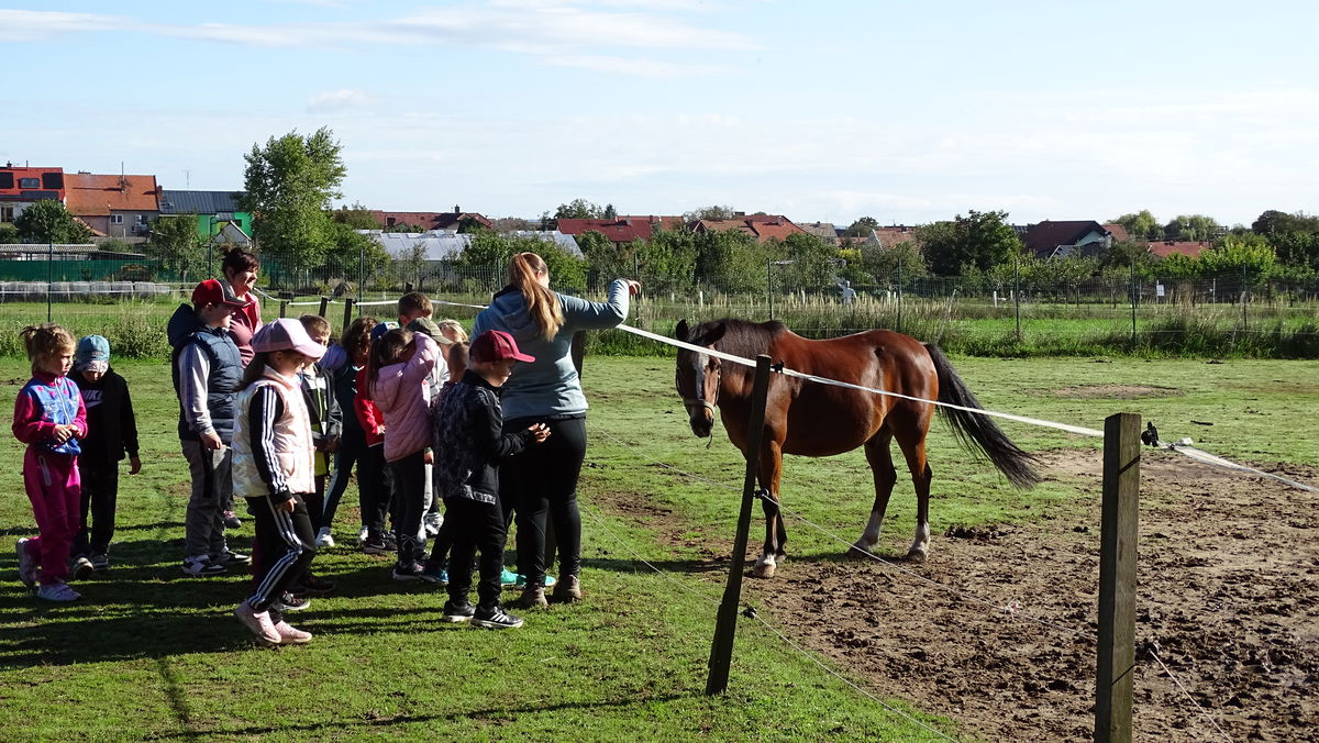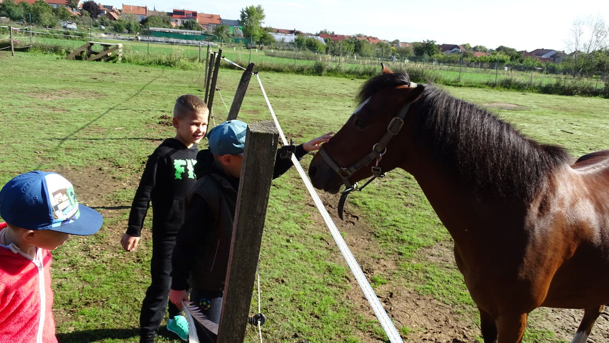 V rámci projektového dne “Učíme se venku” jsme s žáky prvních ročníků zamířili za zvířátky na Minifarmu pana Cichého v Mistříně. Velmi ochotně se nás ujaly hodné tety, které se o zvířátka starají a průvodkyní nám byla paní Jana Bognárová, které tímto děkujeme za zprostředkování. Již cestou na Minifarmu jsme se seznamovali se zajímavostmi v obci - šli jsme kolem kostela, sochy sv.Václava, chráněné lípy, zdravotního střediska, rybníčku Na Dolině a všímali si měnící se podzimní přírody. Na farmě jsme poznávali nejrůznější zvířata, mohli jsme je pohladit, nakrmit, nakouknout do jejich příbytků. Viděli jsme lamy, kozy, koně, poníky, psy, srnče, slepice, kohouty, kuřata, husy, divoké kačeny, pávy, bažanty, křepelky, papoušky i andulky. Učení venku se všem moc líbilo, zvlášť když jsme na konci dostali sladkou odměnu - kopeček zmrzliny z kozího mléka a mohli si zasportovat v miniparku. Manželům Cichým děkujeme za vstřícnost a pracovnicím za ochotu se věnovat našim prvňáčkům. Všichni si chtěli koupit koně nebo poníka, zatím čekáme, jak se vyjádří rodiče. Třeba se někomu splní vánoční přání.