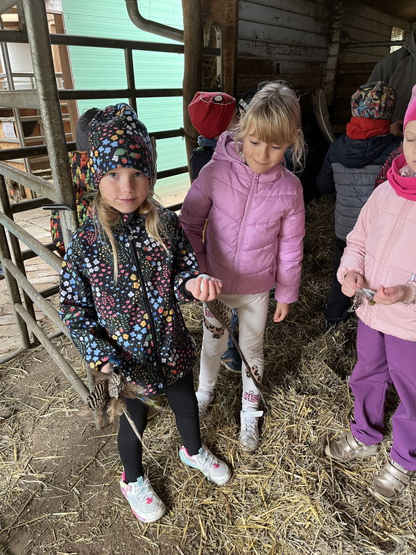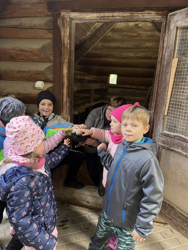 Plánovaná návštěva farmy pana Cichého konečně vyšla a my jsme se tak mohli podívat na spokojená zvířátka, o která se nepřetržitě a s láskou starají zaměstnanci farmy. Blízké setkání s různorodými domácími zvířaty jsme ukončili v příjemně vyhřátém srubu a prohlédli si i několik vycpanin, mezi kterými děti objevily i živého kocoura.