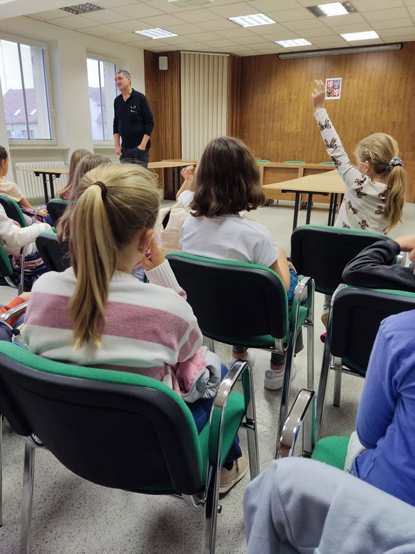 V pátek 17.10. 2025 se uskutečnila v rámci projektu : Naše obec (Prv) exkurze žáků 3. ročníku na OÚ. Setkání s panem starostou Ing. Radkem Schneiderem bylo moc milé. Pan starosta ochotně odpovídal na předem připravené dotazy, ukázal žákům některé místnosti včetně své kanceláře. Následovala návštěva pošty s výkladem o adrese na balíku nebo popisem cesty poslané pohlednice. Na závěr si všichni nalepili známku na již napsané pohlednice s adresou domova, předali k odeslání a s napětím očekávají její nalezení ve schránce.