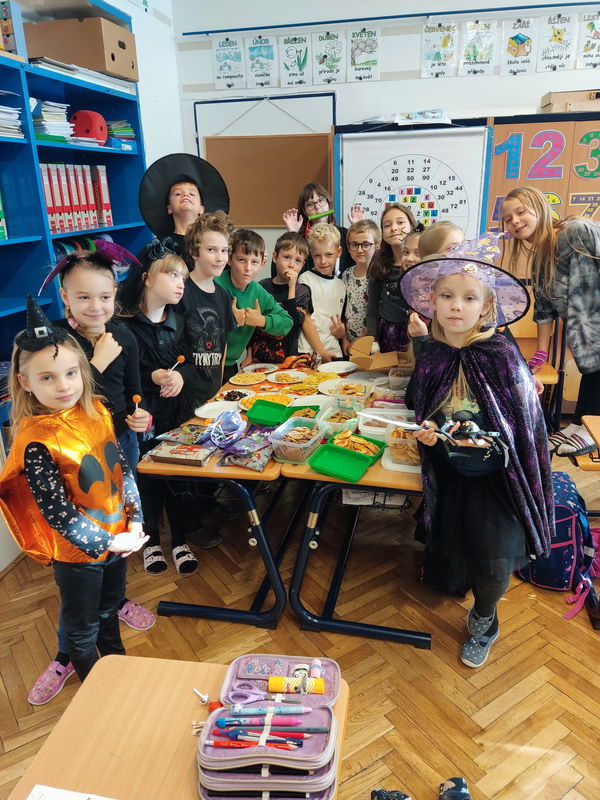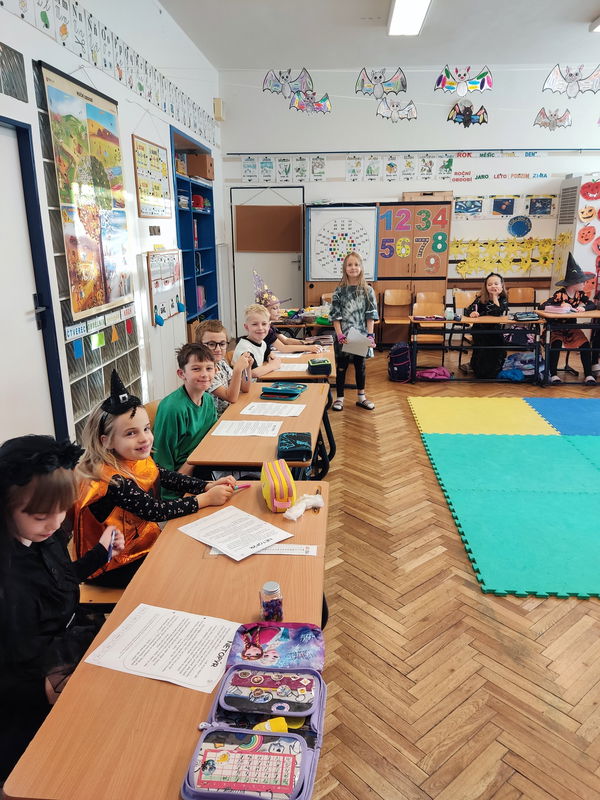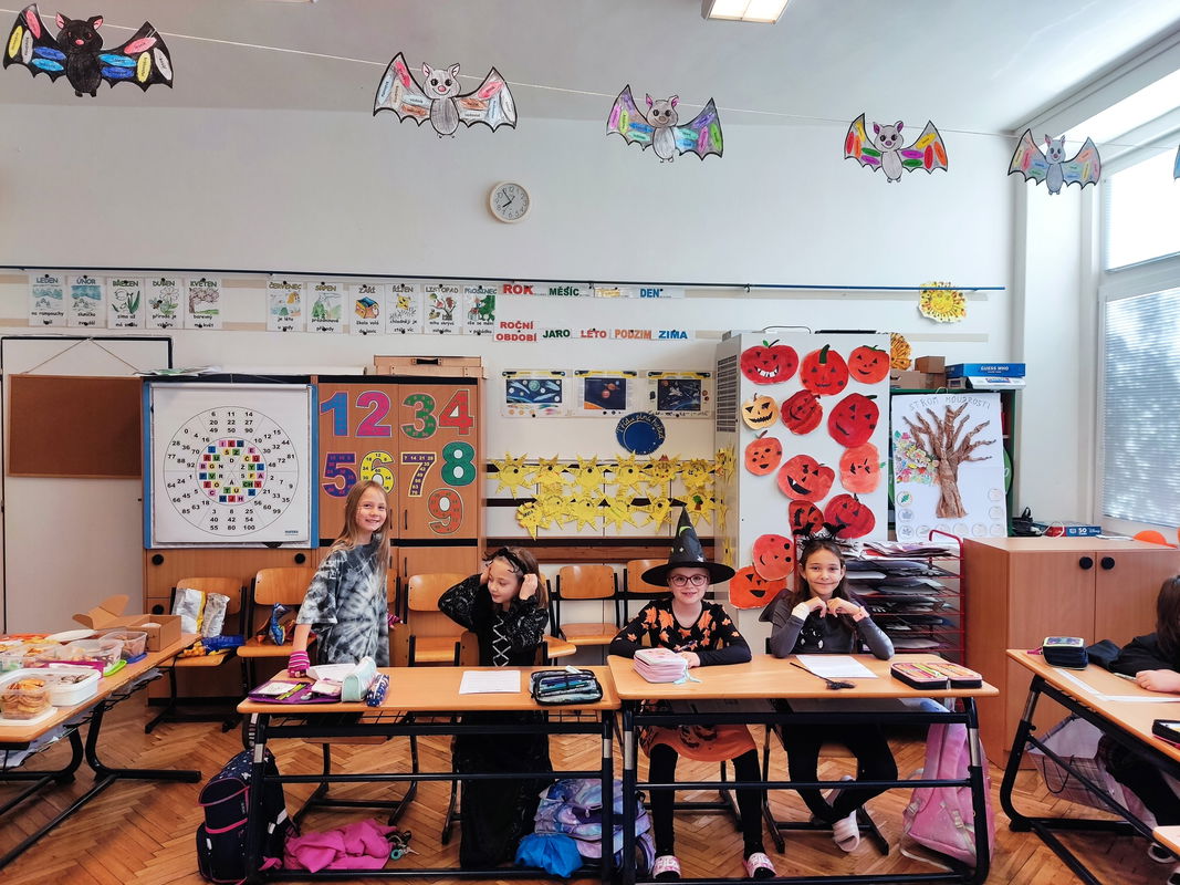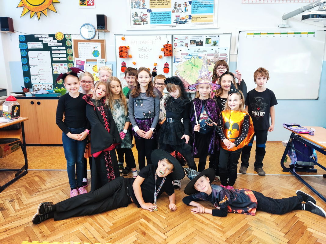 Dne 31. října se ve třídě 3.B uskutečnilo další zábavné projektové vyučování. Místo obvyklé výuky se sešla parta dětí v originálních kostýmech. Připomněli jsme si Svátek všech zesnulých (Dušičky) a zároveň jsme prozkoumali tradice zahraničního Halloweenu. Děti pracovaly na zábavných úkolech, kde si doplňovaly znalosti o místních i světových zvyklostech, a energii doplňovaly z přinesených dobrot. Nechyběly ani hudebně-pohybové chvilky a tance. Skupinovou práci i celý den plný zážitků jsme si báječně užili!