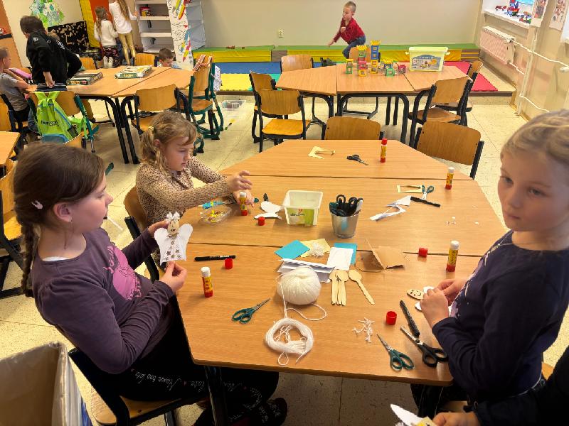 V rámci příprav na svátek svatého Mikuláše si děti vyrobily čertíky a zároveň se seznámily s významem této tradice. Další tvořivou aktivitou byla výroba andělíčka technikou macramé, při níž si děti rozvíjely jemnou motoriku a trpělivost.