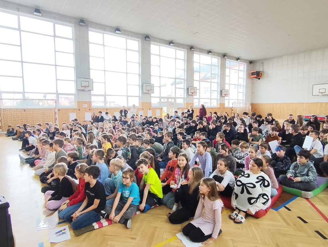 Děti z 1.stupně si přímo v tělocvičně projekty odhlasovaly. 2.stupeň bude hlasovat online na začátku února.