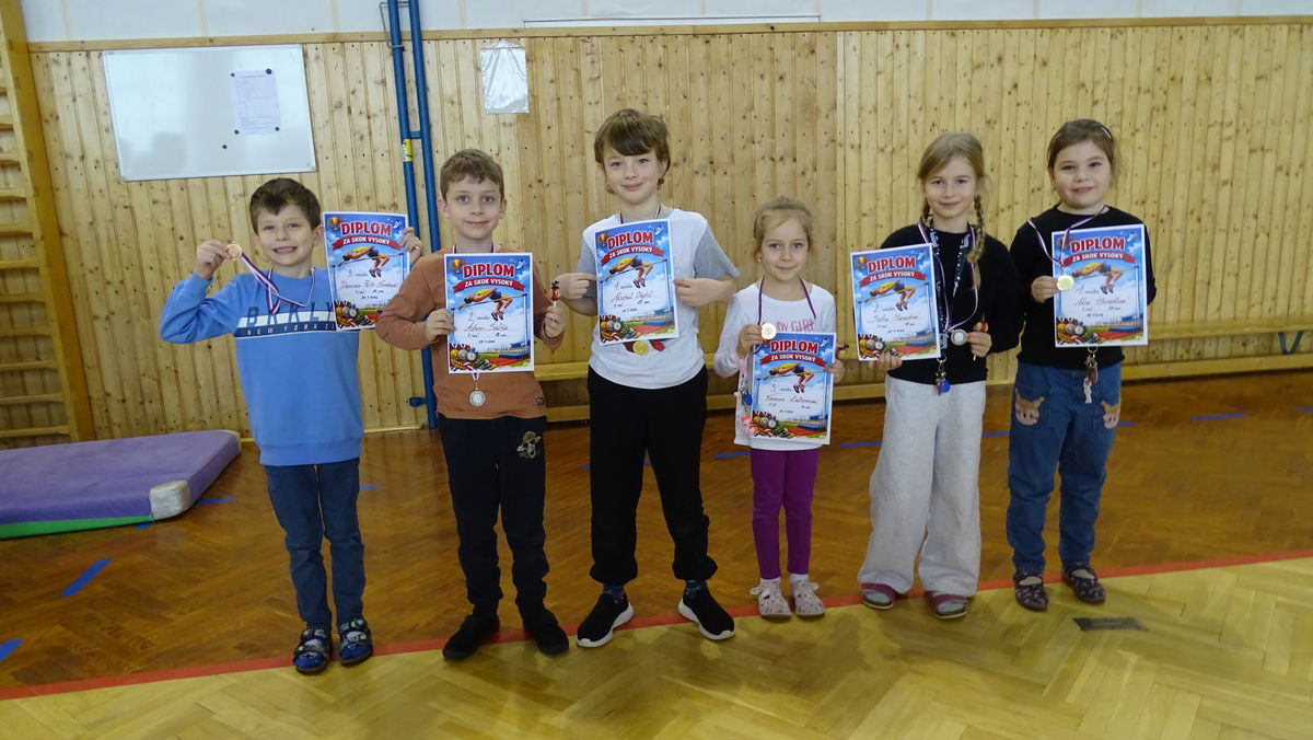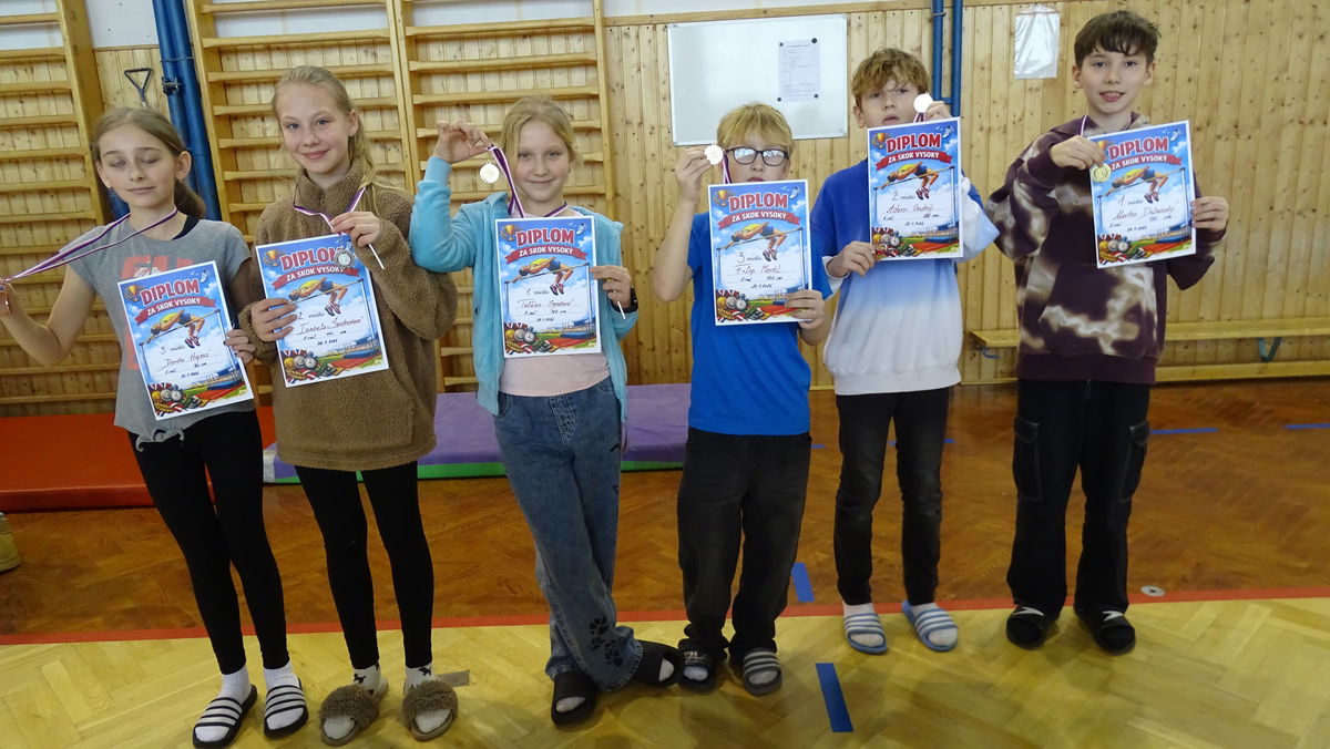 Ve středu 28.1.2026 dopoledne patřila tělocvična školy již tradičnímu sportovnímu klání ve skoku vysokém s názvem : Novoroční laťka. Účast žáků 1. stupně byla dobrovolná, ale podmíněná zdoláním základní výšky pro jednotlivé ročníky a odrazem z jedné nohy. S mohutnou podporou diváků padaly rekordy. Mnozí žáci mají tak vytříbený skokanský styl, že si porota připadala jako na skutečné olympiádě včetně dramatických soubojů o zlatou medaili. Všem oceněným gratulujeme a těšíme se zase za rok.
