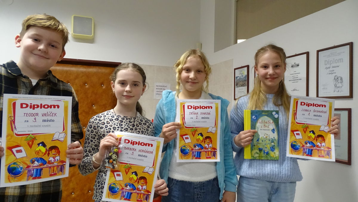 V březnu nás budou v Okresním kole recitační soutěže v Hodoníně reprezentovat tito žáci: Vojtěch Gongala, Adam Krakovič, Oliver Kühtreiber, Tomáš Schiller a Anna Kundratová. Blahopřejeme všem soutěžícím i postupujícím, velmi nás těší stálý zájem o mluvený projev a recitaci. Poděkování patří též rodičům a učitelům, kteří děti na soutěžní přehlídku DĚTSKÁ SCÉNA (nejen) letos připravili.