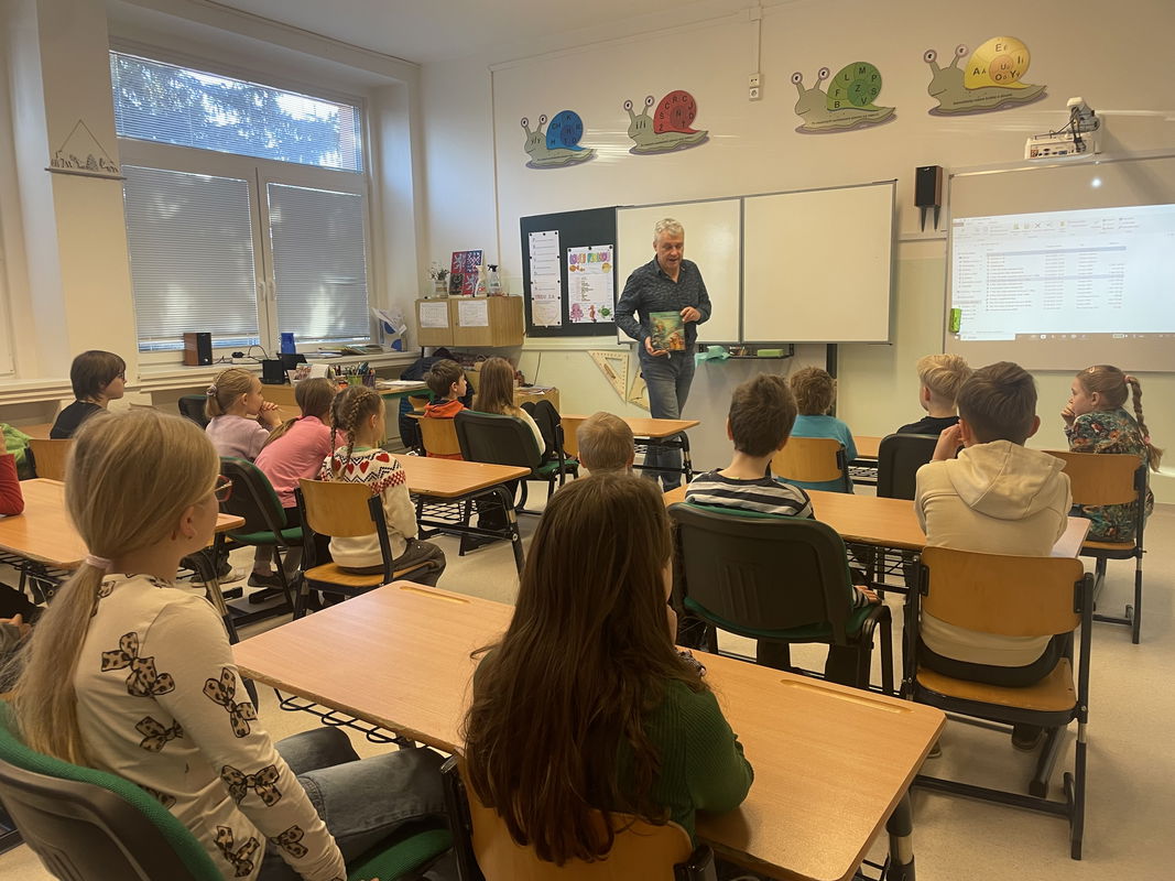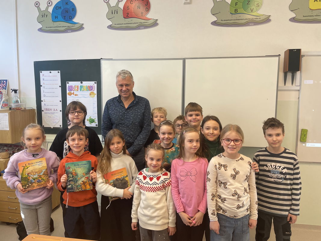 V naší škole se na začátku ledna uskutečnila beseda s autorem Josefem Benešem, již navštívili žáci 2.-5. ročníků. Pan spisovatel Josef Beneš je autorem série knih Meďan a Koumen. Žáci byli seznámeni s tím, jak taková kniha vzniká, jak se vytváří ilustrace. Děti též zhlédly videa z tiskárny, kde se knihy vyrábí a kompletují. Poslechly si ukázku z knihy a mohly si též zasoutěžit o pexeso s obrázky z knih a knihu si u autora i zakoupit a to s věnováním a podpisem. Beseda s autorem byla pro děti příjemným zpestřením v čtenářské oblasti a pokud budeme mít možnost, rádi zrealizujeme podobnou akci opět s jiným autorem.